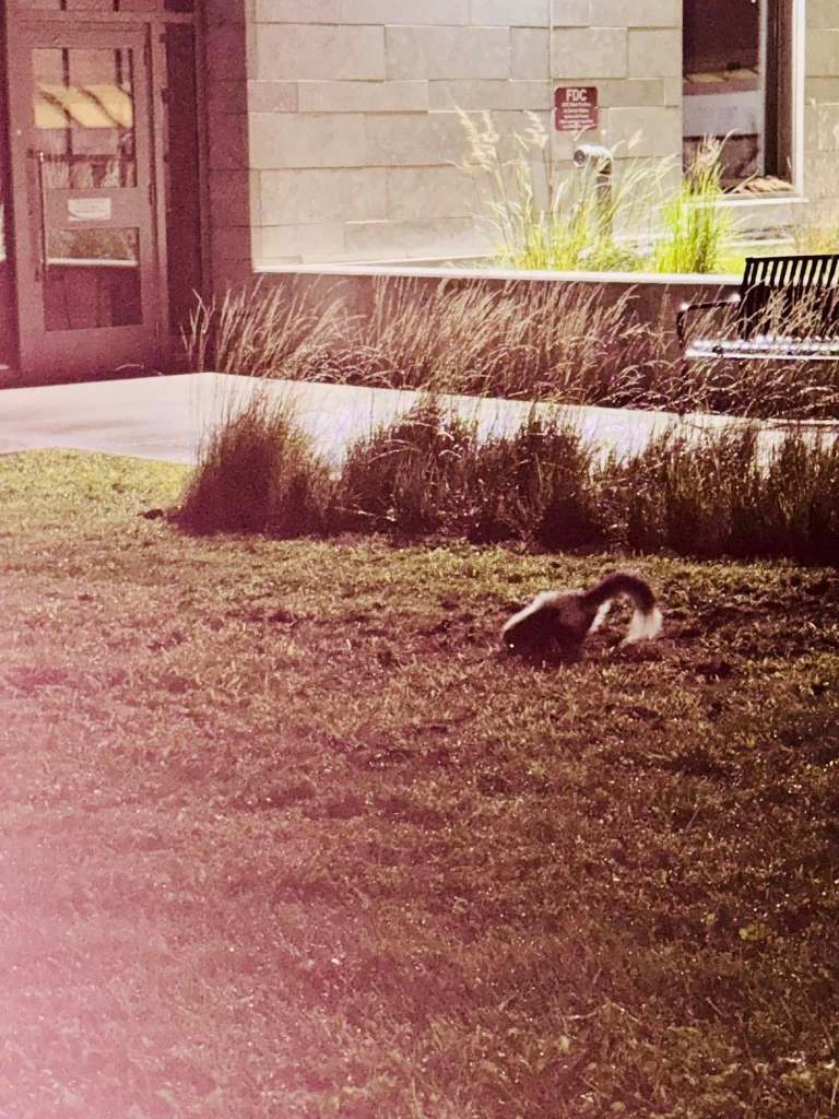 during my night shifts, sometime between 2a and 3a, i like to go for walks outside around the hospital and university. it’s so quiet and calm and still at that time. and, for those who don’t know, there are families of skunks and bunnies that live on the grounds between the hospital and university. i always say hi to them on my walks (the skunks are my friends and never spray me). and on that last night, i said goodbye to all the ones that i could see. i wonder if they’ll miss me as much as I’ll miss them..