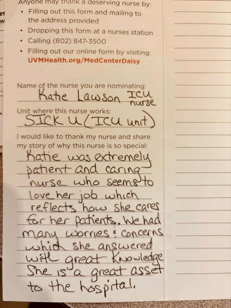 my last day at the university of vermont medical center was an overnight shift on september 26. it’s funny.. i moved to vermont on september 26 in 2020. serendipitous..